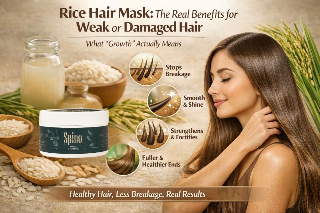 Discover how Spino’s Rice Hair Mask helps weak or damaged hair look healthier by smoothing, strengthening feel, reducing breakage, improving shine, and supporting length retention—without false “instant growth” claims.